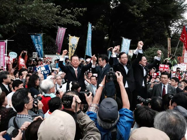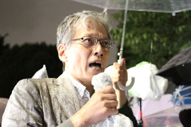 民主党の岡田克也代表や「生活の党と山本太郎となかまたち」の小沢一郎代表、ミュージシャンの坂本龍一さんらが「いい加減で、バカげた、そして危険な法律を阻止するために何としてもみんなで力を合わせないといけない」(小沢氏)、「民主主義が、憲法が壊されようとしている」(坂本氏)などと演説した。参加者は雨の中を「戦争法案、絶対反対」「戦争したがる総理は辞めろ」などと連呼した。