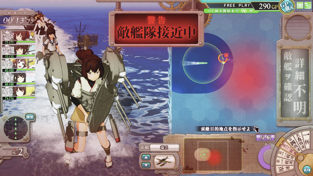 操舵輪と船速レバーを操作しながら作戦海域を索敵し、会敵すると戦闘開始。また、戦闘時は、先制攻撃をしかけるか一斉攻撃を狙うか、提督として采配を振るいます。