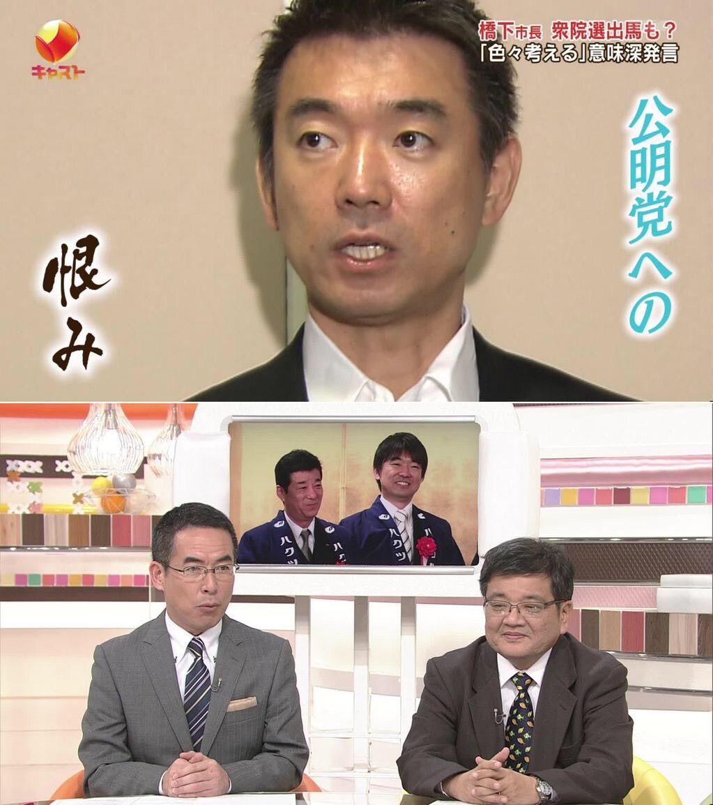 両氏は、大阪都構想の議論の進め方をめぐりたもとを分かった公明に対抗するため、 公明が姿勢を転じて都構想に協力しなければ、橋下氏が公明の佐藤茂樹大阪府本部代表(55)の選挙区である大阪3区、 松井氏は北側一雄党副代表(61)の選挙区である大阪16区から出馬する可能性を表明していた。