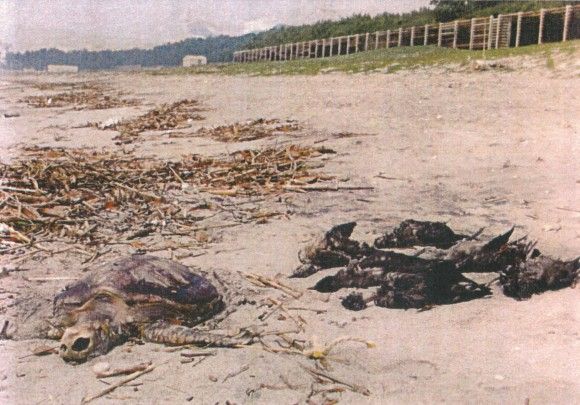 川内原発周辺の海岸に打ち上げられたウミガメの死体