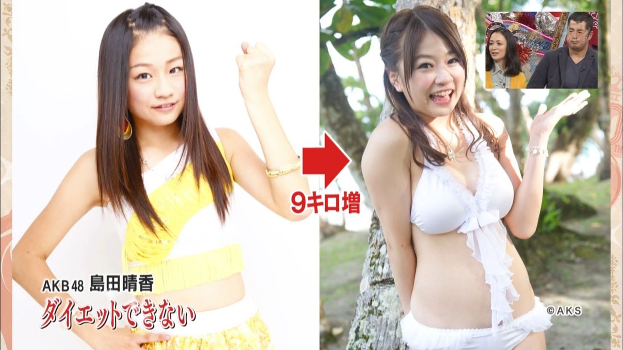 12日放送の「ダウンタウンDX」(日本テレビ系)に、AKB48・チームKの島田晴香(20)が出演し、体重がデビュー当時から最大9kg増加したことを告白。ビフォーアフター写真も公開され、その激変ぶりにスタジオの共演者からは驚きの声が上がった。