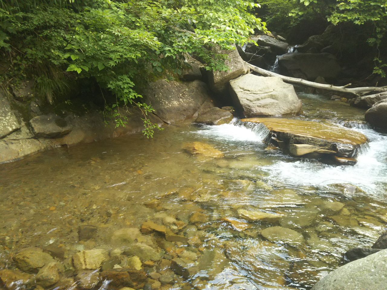 最後に支流の谷を覗いて元気なイワナを見て納竿としました。