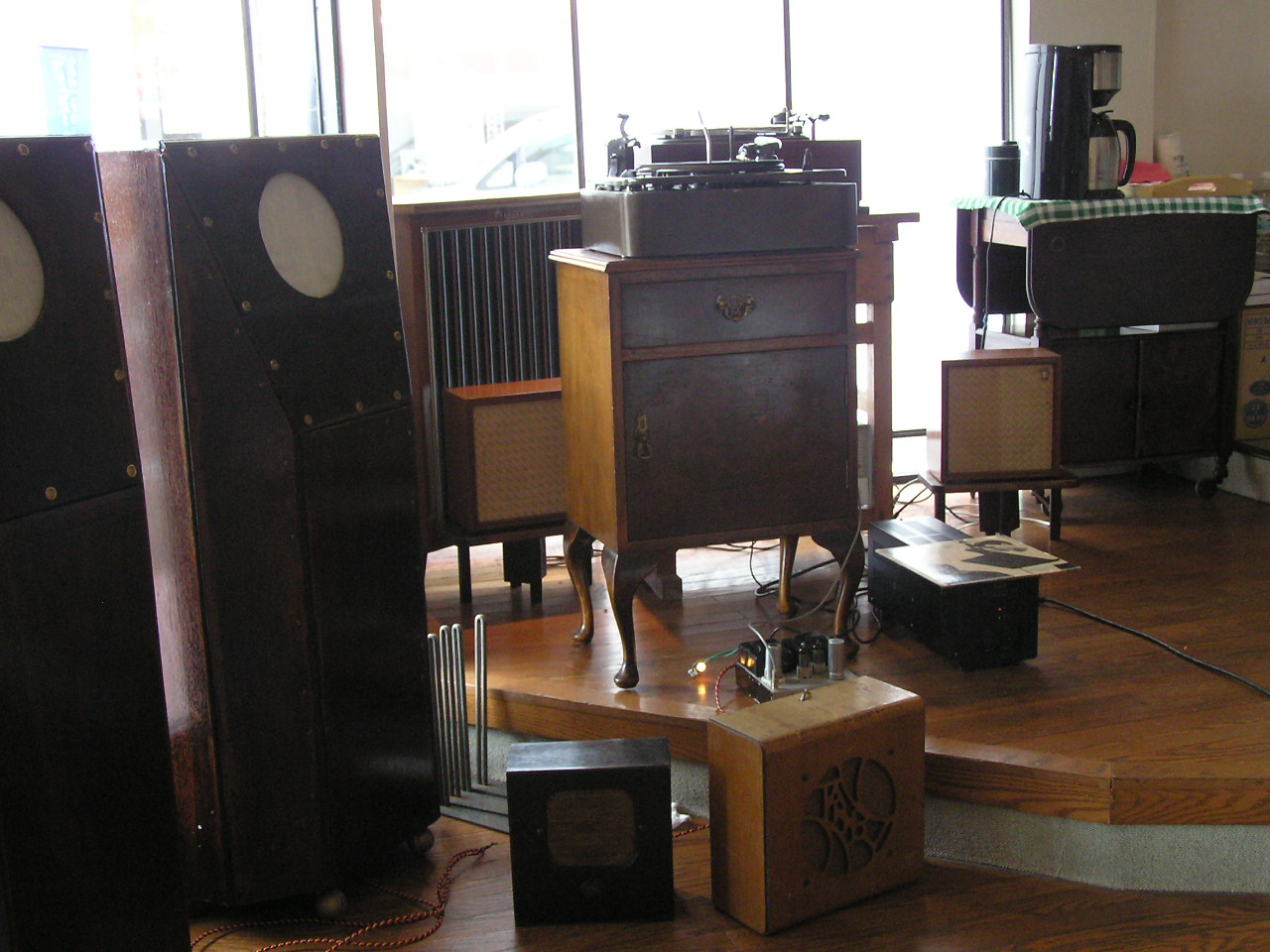 ガラードのオートチェインジャーにパイのアンプ、それから、スピーカーはタンノイにしようか、ホワイトリィ(ステントリアンの前身)にしようか、実際に音を出して聴いてみるのが、一番。 どちらも戦争中か戦後すぐに製造された古いものだけれど、驚くほどリアルで活き活きした音が出る。 色っぽくて、香りがする。 家庭で聞く音には、グッドリプロダクションがかかせない。 歌手がプレイヤーの傍らに立ってささやきかける。 贅沢な気分、くつろげる時間。 そういうもののために音楽はあるんじゃなかったっけ。 弾むリズム、声にざらりの肌触り。 理屈だらけの音が、原音に近づけば近づくほど、嘘っぽく聞こえてしまうとは反対に。 音楽は本能にはたらきかけるもの。ありふれた蘭Ronette社製のクリスタルカートリッヂに、英PYE社の2W電蓄アンプ、それに英WHITELY社製の10cm径ユニット内蔵エクステンデッドスピーカー(2.75Ω)。 これだけで、官能にはたらきかける音楽が部屋を満たす。 大きな装置では絶対に真似の出来ないチェット・ベイカーが、クリス・コナーが、シュザンヌ・ダンコがふっとそこにいる。 寝そべりたくなる。