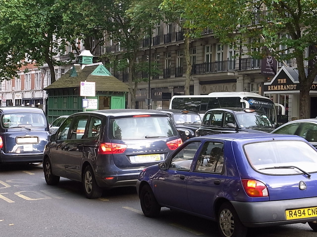 ロンドンでは緑色に塗られた小屋をあちこちに見かける。 タクシーの運転手のカフェ。 この小屋は広い車道の真ん中にあるからタクシーは混雑時でも堂々と縦列駐車。もちろん車を掻き分けていけば一般の人も利用できる。 馬車の時代から続いていると、聞いた。