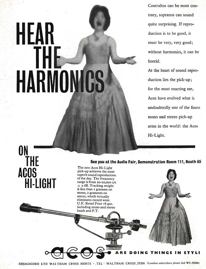 英国ピックアップ第10回、Cosmocord (ACOS) "HI-LIGHT" STEREOPHONIC PICK-UP について書きます。 1960年ロンドン・オーディオフェアで絶賛を浴びたトーンアーム。 企画デザインは、英DECCA社でピックアップ部門を担当していたJean Walton 。