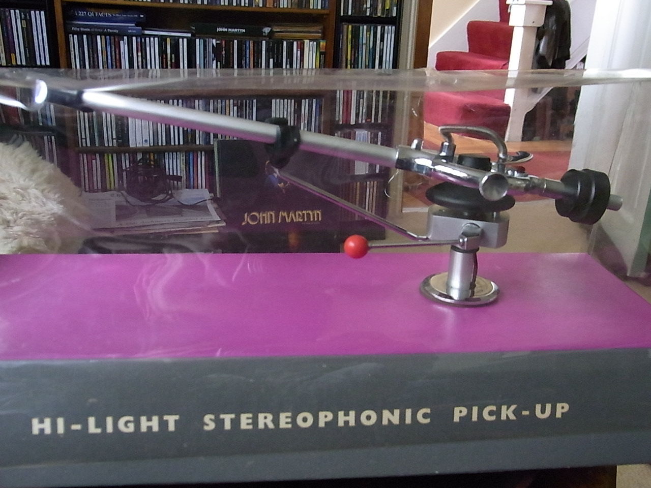 カートリッヂヘッド(ACOS GP77/DECCA DERAM) をアームパイプに直接プラグインするタイプですが、どちらもクリスタル型とセラミック型ですので、コントロールアンプの入力感度の整合が難しい場合は、軽量シェルを取り付けてMMカートリッヂを使用します。 ワンポイント支持ピヴォットでありながら、さらに垂直方向ベアリングを仕込んでさらにフラフラにするという念の入れよう。 フラフラでありながら、再生音は独特の深みを持っているから怖いのです。 ボトムエンドへの切れ込みが尋常ではありません、深くそして急速に沈みつつ楔を打ち込むのです。 したがって低域の伸びは他と一線を画します。 当然これまで何度も言っていたように、米国製アンプやスピーカではこのアームの相手にはなりません。 米国の再生基本は音を伸ばすよりも固めるものであり、質より量で勝負しますから、折角この”HI-LIGHT"アームが超低域に向って猛烈に伸ばしても、すべて空振りするのは火を見るより明らかです。