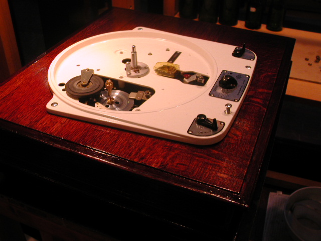 今回製作したキャビネットは、アイボリーホワイト仕様のガラード301を使用するために、特別に考案しました。