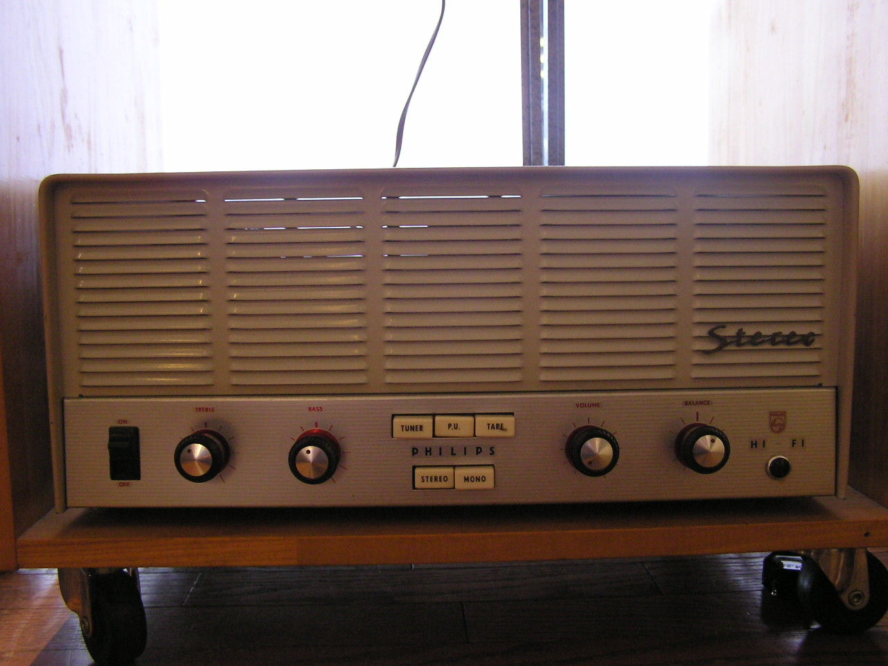 日々Hi-Fiに明け暮れ、大型スピーカーと格闘している方や、オーディオに疲れ果てた方に、もう一度本来あるべきレコード音楽の楽しさを、味わってもらうために製作したものです。 仮にこのスピーカーを買われたとして、マークレヴィンソン等のアンプや、ベルトドライブプレイヤーで無理矢理鳴らされたりしたら、本機の良さは出てきません。 もちろんマークレヴィンソンとはインピーダンスが適合しませんが。 そこでこのスピーカーと反応する機器を組み合わせて、アッセンブリーを試みることに致しました。 まずアンプリファイアは、フィリップス社のHF308(モノーラルプリメイン)アンプでOTL回路を採用しており、本スピーカーとのマッチングにおいては、甘目のメロウな音がします。 Hi-Fi的にはもう一台のAG9015(ステレオOTLアンプ)の方が、効果が上がりますが、あまりに音がはっきり、くっきり出過ぎるきらいがあり、モノーラルアンプの方が何のストレスも無く、安心してレコード音楽を楽しむことが出来ます。 しかしOTLアンプゆえ、小型ながらやや発熱があり、特に夏場はシャシが熱くなりますが、音ダレは発生致しません。 発熱が心配の方は、付属品として小型のファンを一緒におおくりしますので、シャシの上部に載せて頂けば、発熱の問題はクリアします。 レコードプレイヤーは現在、TD134を使っていますが、個人的にはこのシステムには少々勿体ない気がします。