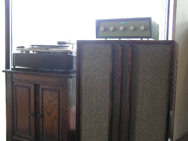 実際、TD134というプレイヤーは大変貴重なモデルで、状態の良いものは滅多に見ることが出来ないからです。 見かけはTD124に比べて、プラッターも小さいし、普及機と思われがちですが、モーターやステッププーリー、アイドラーは全てTD124初期型と同じですし、センタースピンドルもTD135の様な簡略化されたものではなく、TD124のメタルスピンドルを小型化したものです。 したがってスピーカーへの制動力はかなりのもので、ヴァイタヴォックス・クリップッシュホーン型も楽々と動かすことが出来ます。 従って私としてはこのシステムは、TD135の方が良いのではと考えています。
