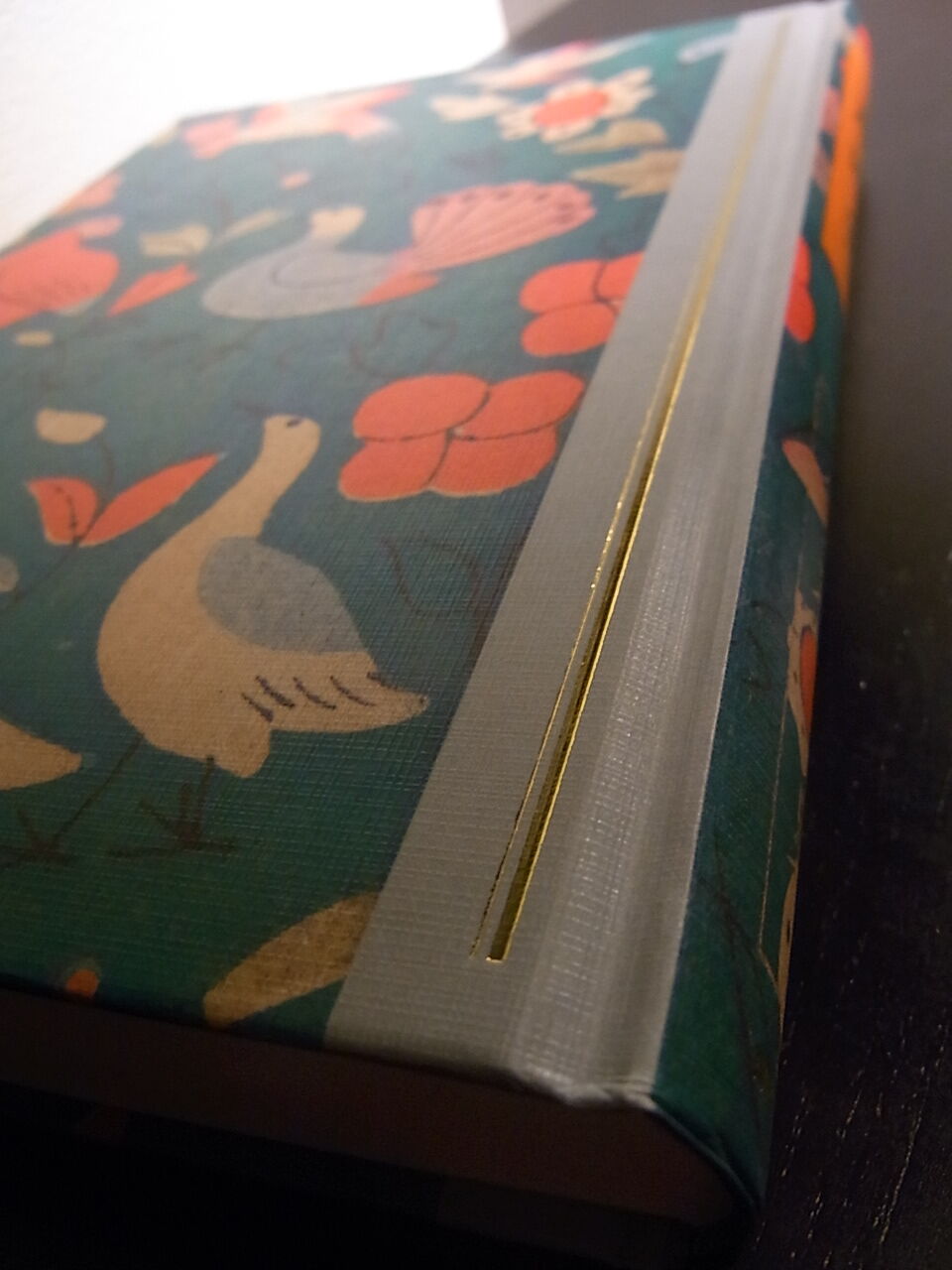 背表紙と表紙の間に灰色の帯、