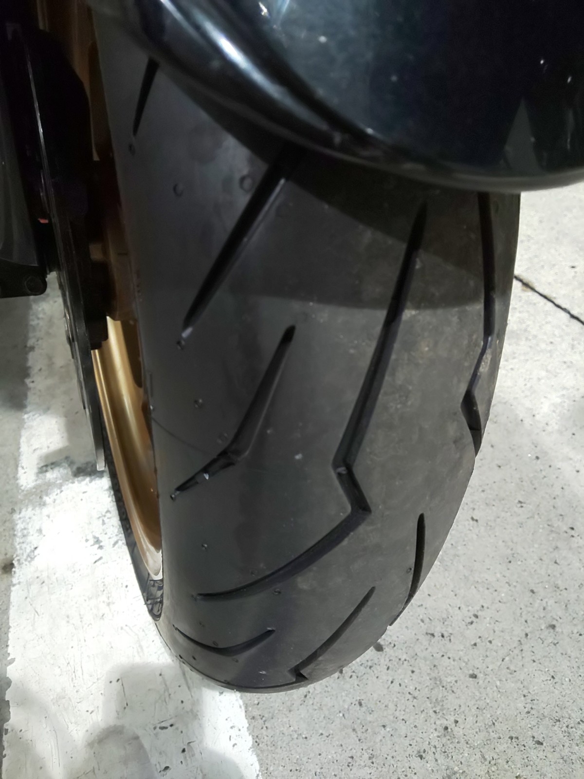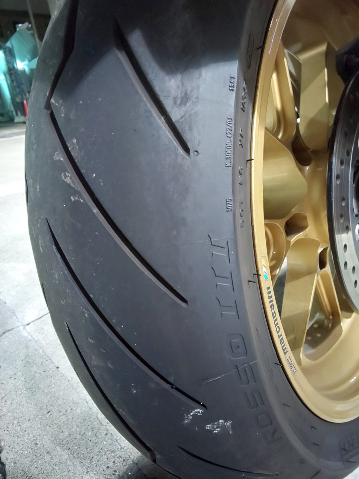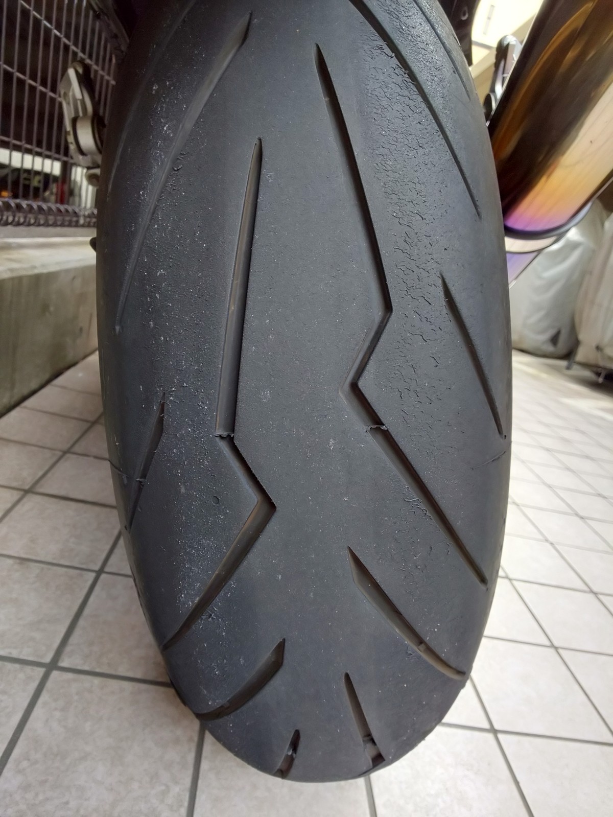 フロントタイヤをロッソ3にして、フロントブレーキは格段に効かなくなった