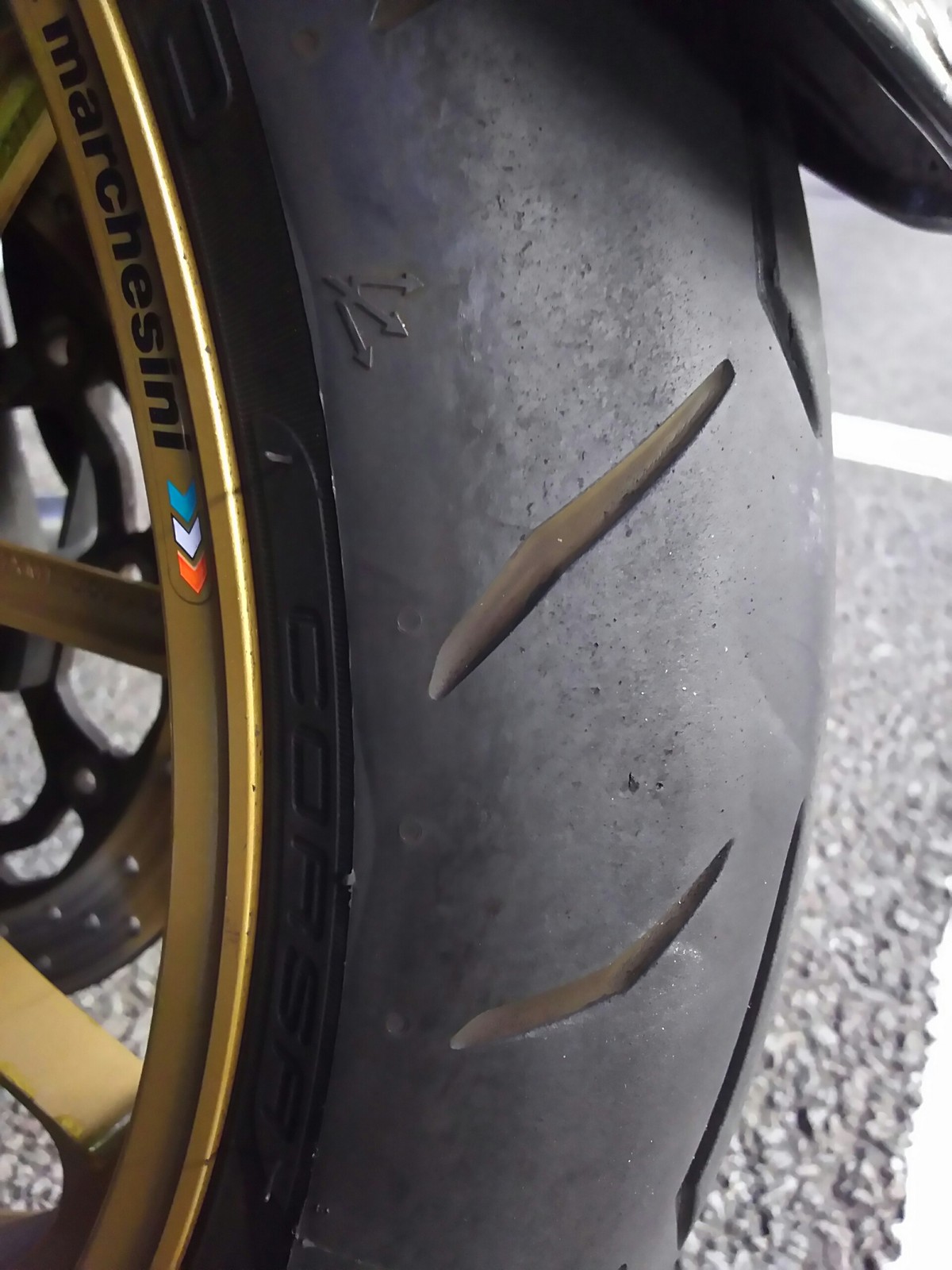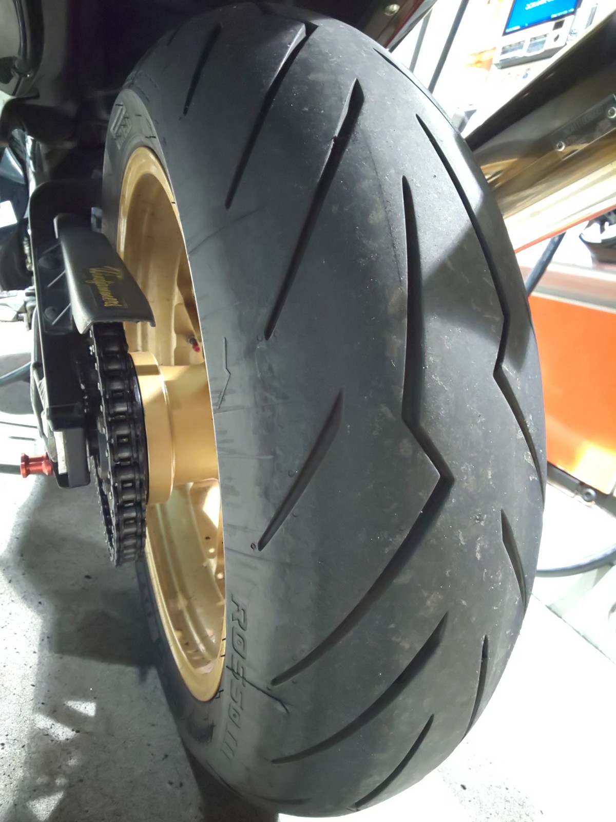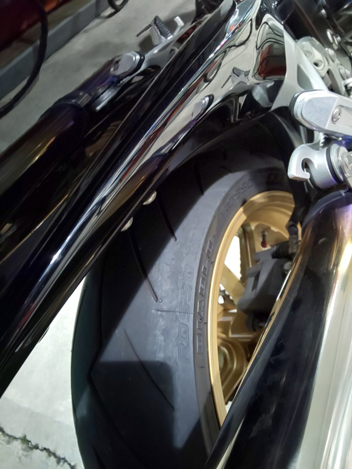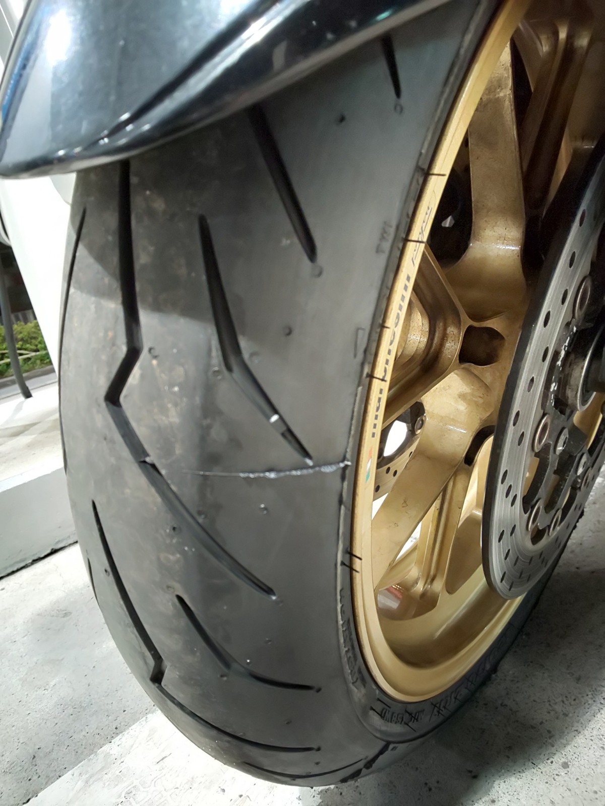 フロントタイヤをロッソ3にして、フロントブレーキは格段に効かなくなった