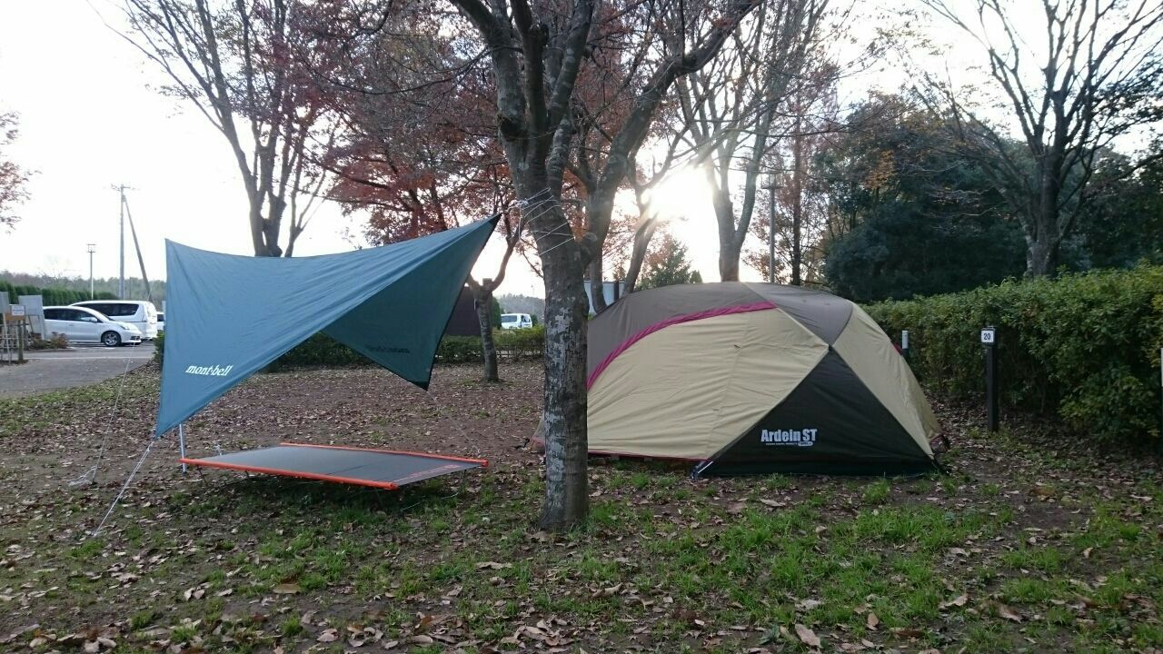 モンベルのミニタープ這って、ドッペルギャンガーのコット入れて設営完了