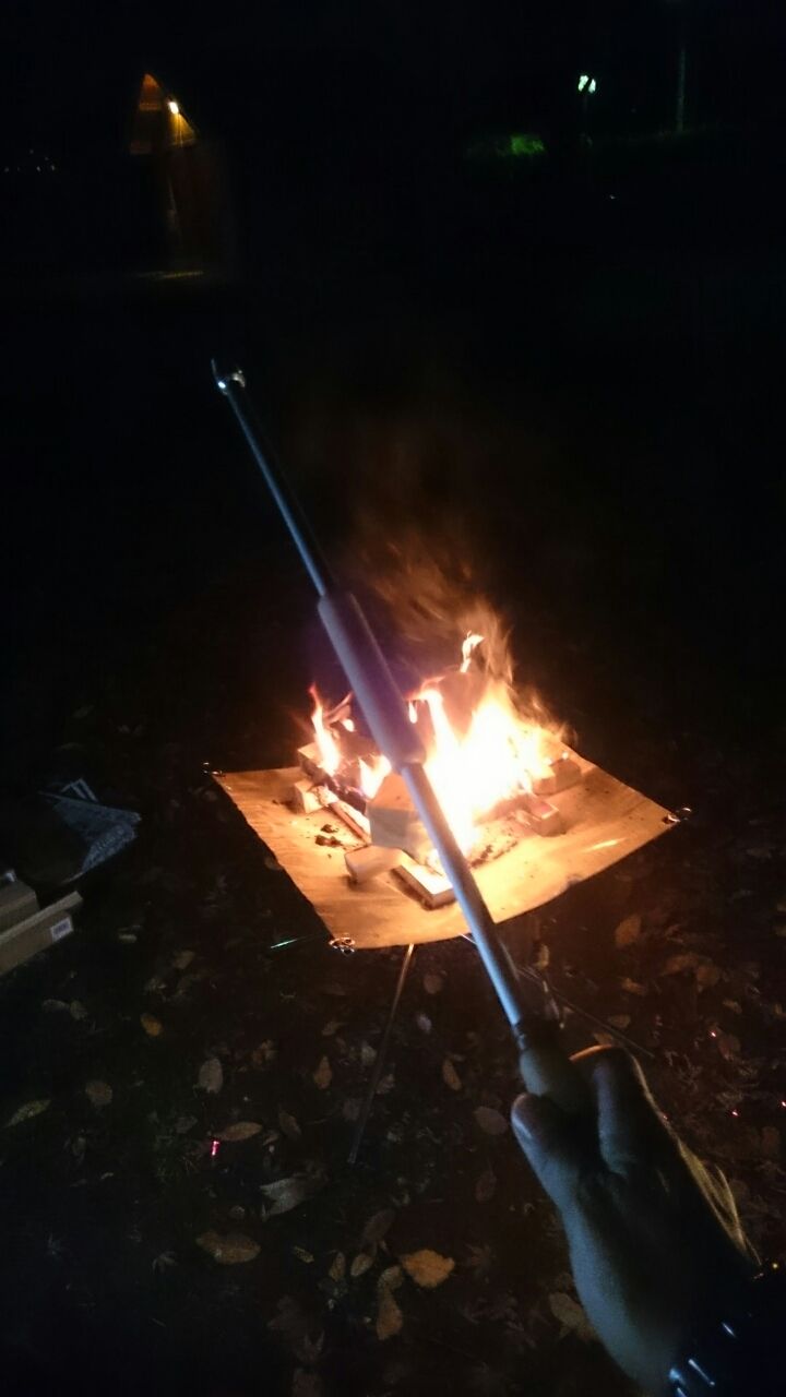 ひとりメンバーきたくし、残りのメンバーで焚火会