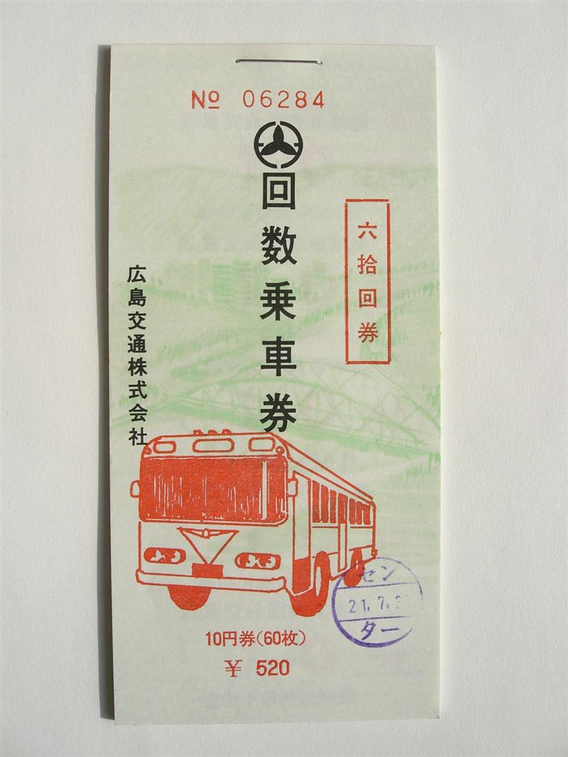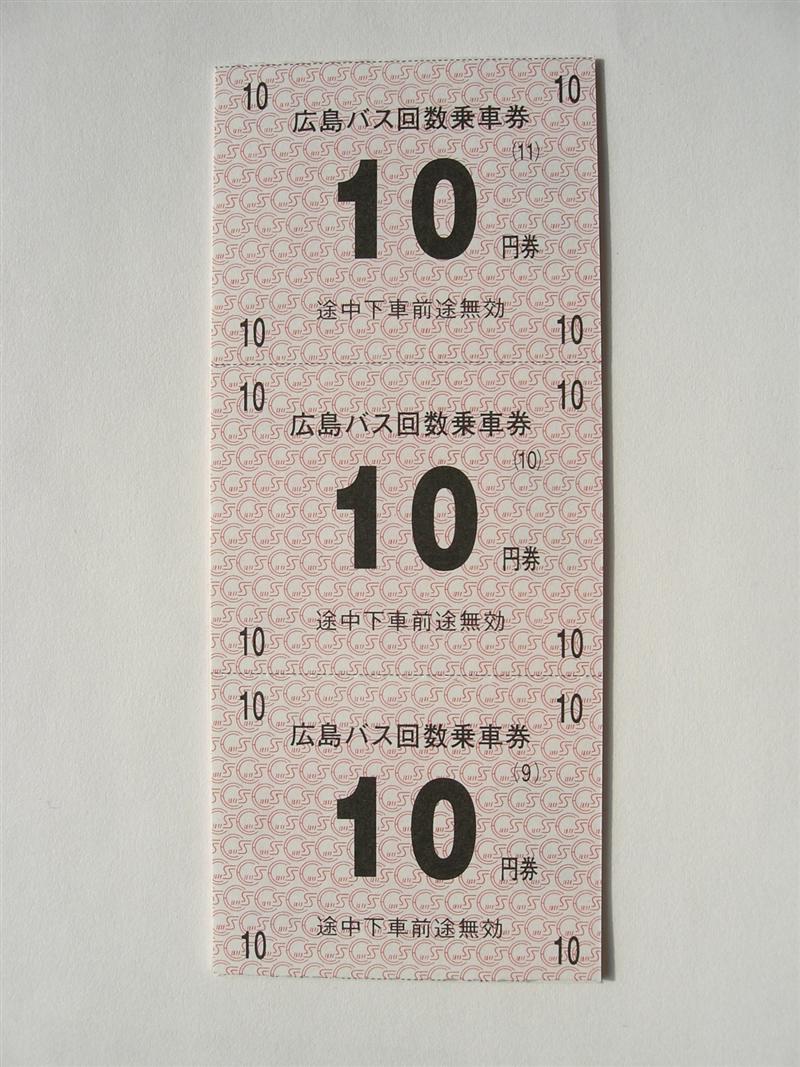 ○広島バス(金額式回数券10円11枚綴り〜)