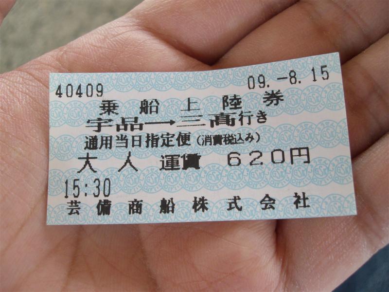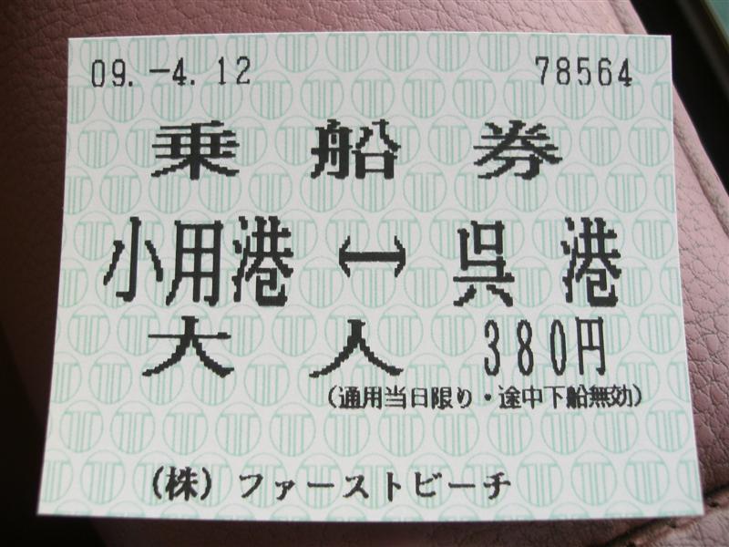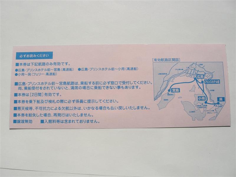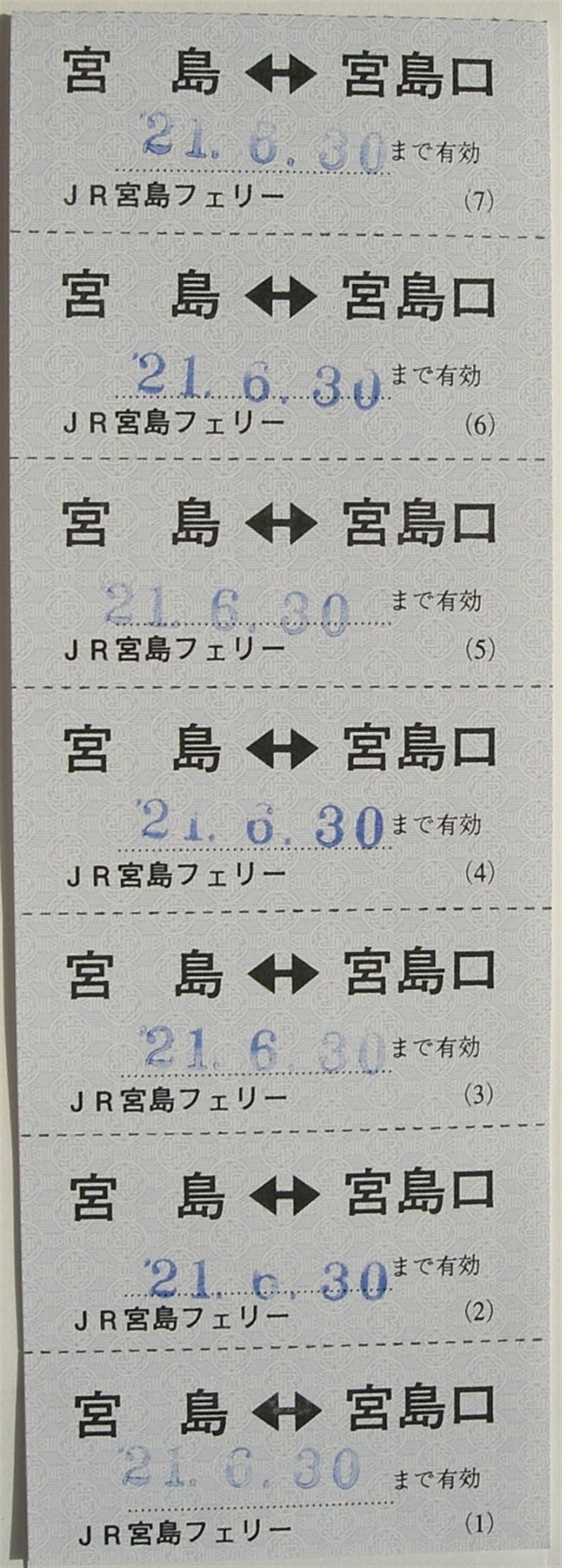普通乗船券としての代用発売ですから、当然回数券の冊子から切り離されるので、1冊まるごと購入するのでしたら、おそらく宇品で発売しているのでそちらで買うことをお勧めします。ただし、11枚つづりで10300円もしますが。