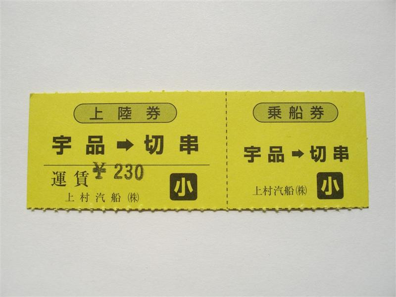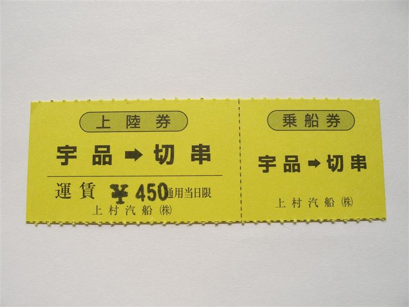 乗船券の様式は、以前紹介しました上村汽船の乗船券によく似ており、サイズもほぼ同じです。乗船券と上陸券が分かれておりますが、乗船時にはきっぷの回収を行いません。下船時のみにきっぷの回収を地上係員が行います。