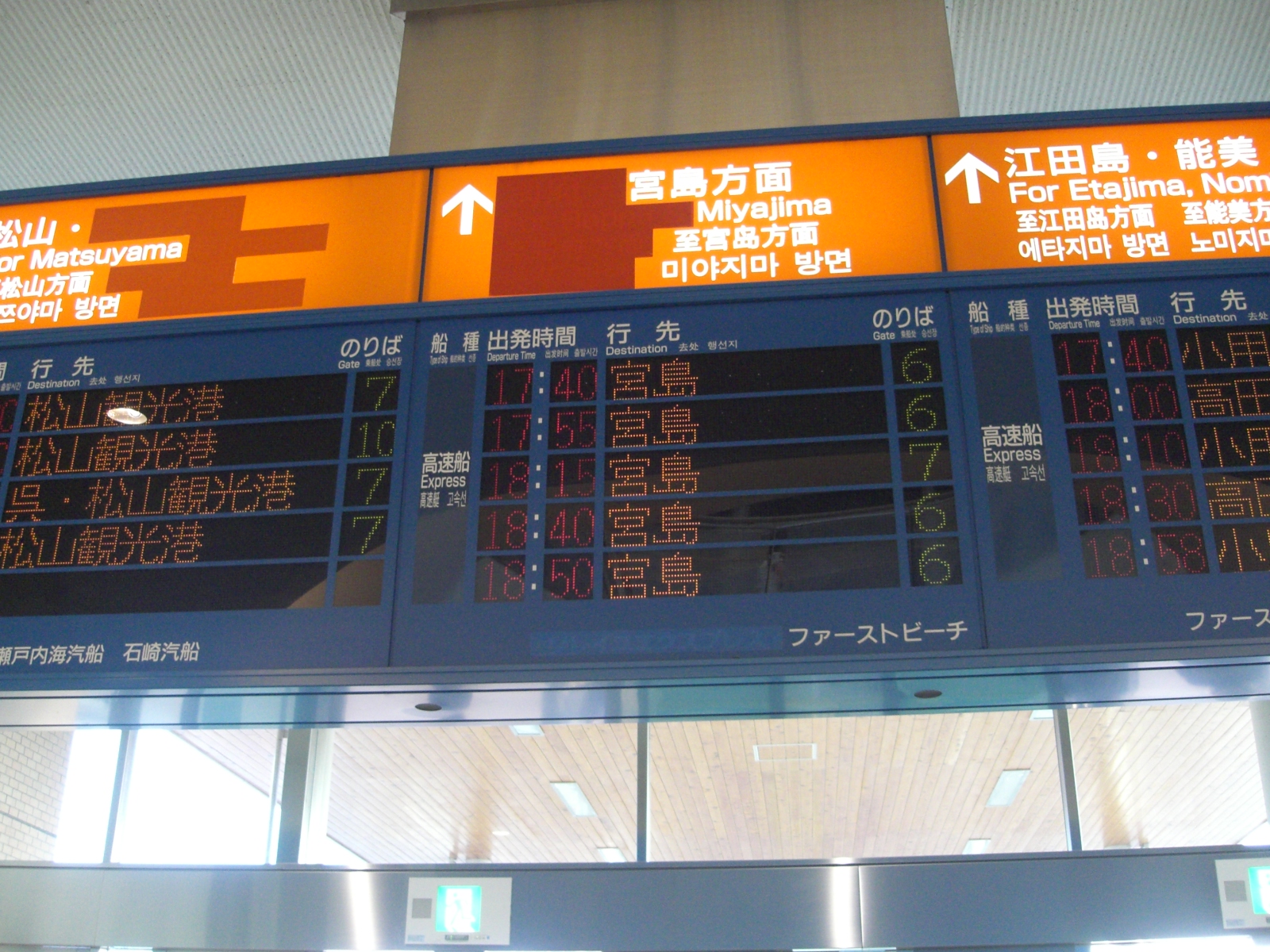 JR西日本では「接続駅+路線名」という表示が多いのですが(例:岩徳・川西・錦川鉄道)、宮島フェリーでは「宮島口」のみとなりました。これは会社名(路線名?)が長いため省略したものと思われます。