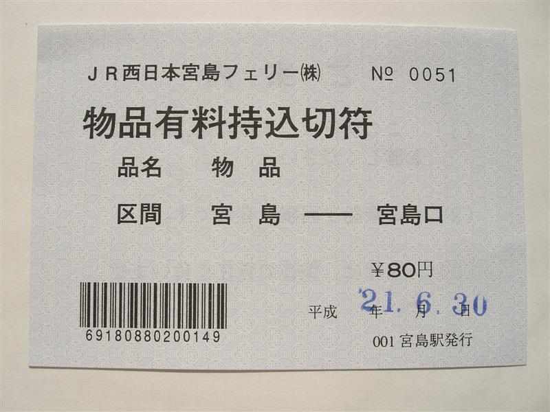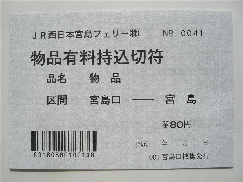 JR西日本宮島フェリーの乗船券類(有料持込:物品)