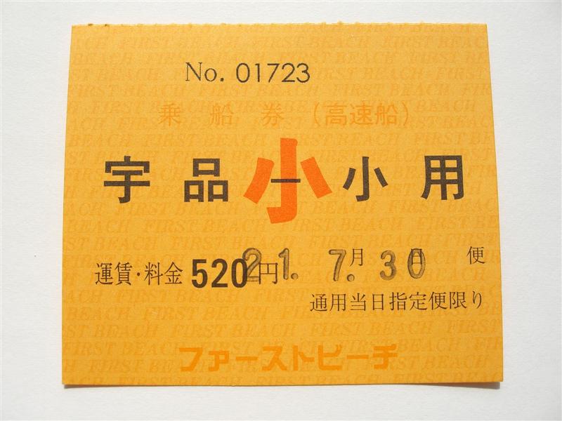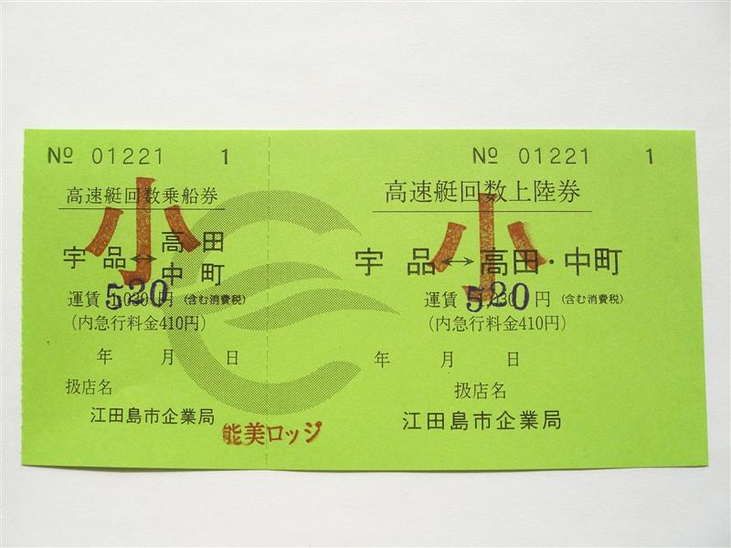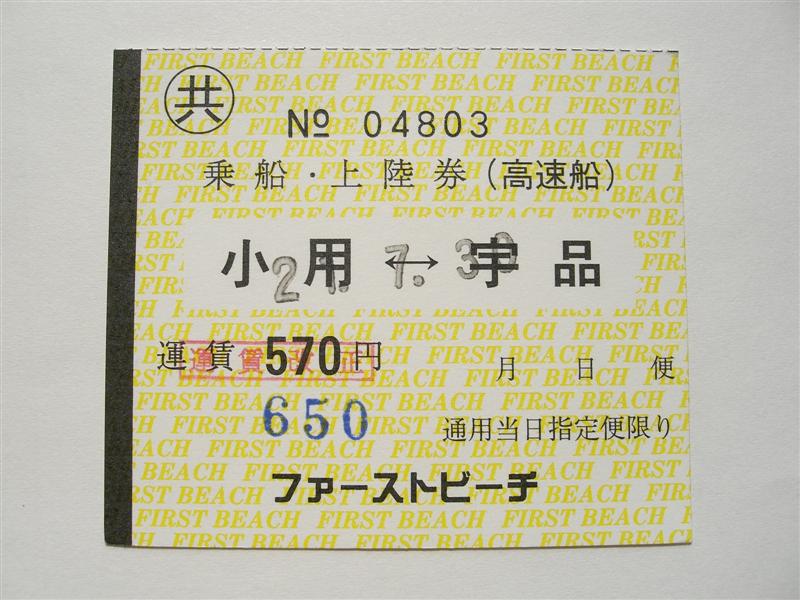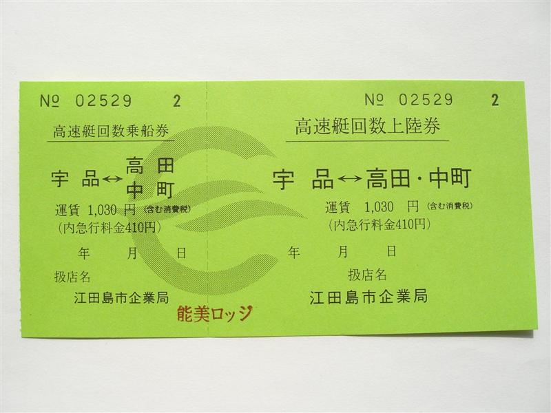 この回数券はいまだに乗船券と上陸券が分かれていますが、高速艇は乗船時に券を回収しますので、フェリー乗船券同様、乗船券と上陸券が分かれている意味はありません。