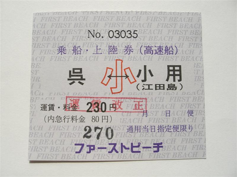 乗船券類は度重なる運賃改定などで全て江田島市のものとなっていると思われます。