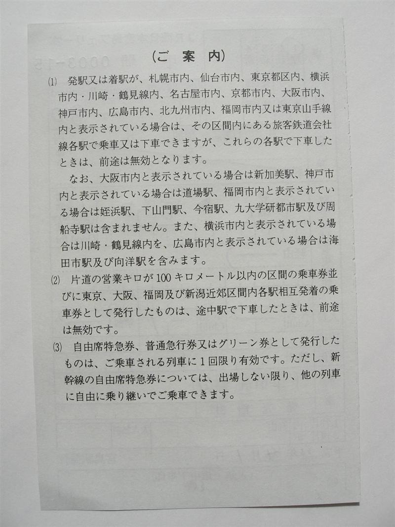 また、普通券と同様に「下車前途無効」の文言が削られた他、のりこしの注意書きも削除され、注意書きが少なくなってあっさりした感じがします。