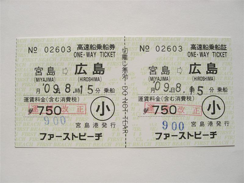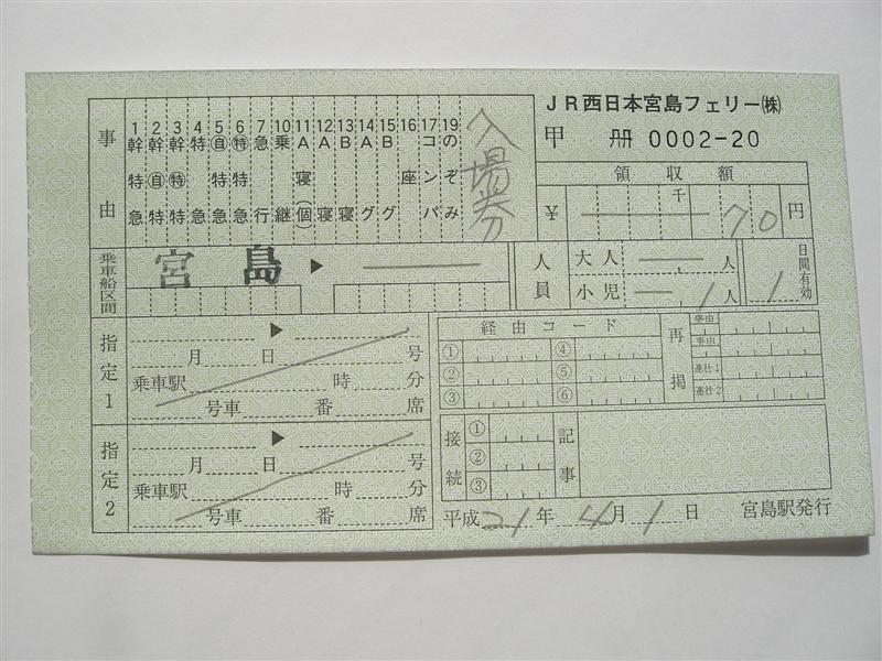 最後に、まだ分社化の話はあったものの、公告が一切出ていなかった3月1日発行の宮島航路単独券です。現在宮島フェリー単独券の発行は禁止されているそうです。