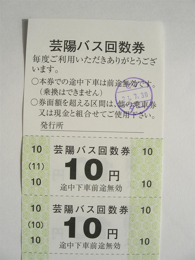 ○芸陽バス(金額式回数券10円11枚綴り〜)
