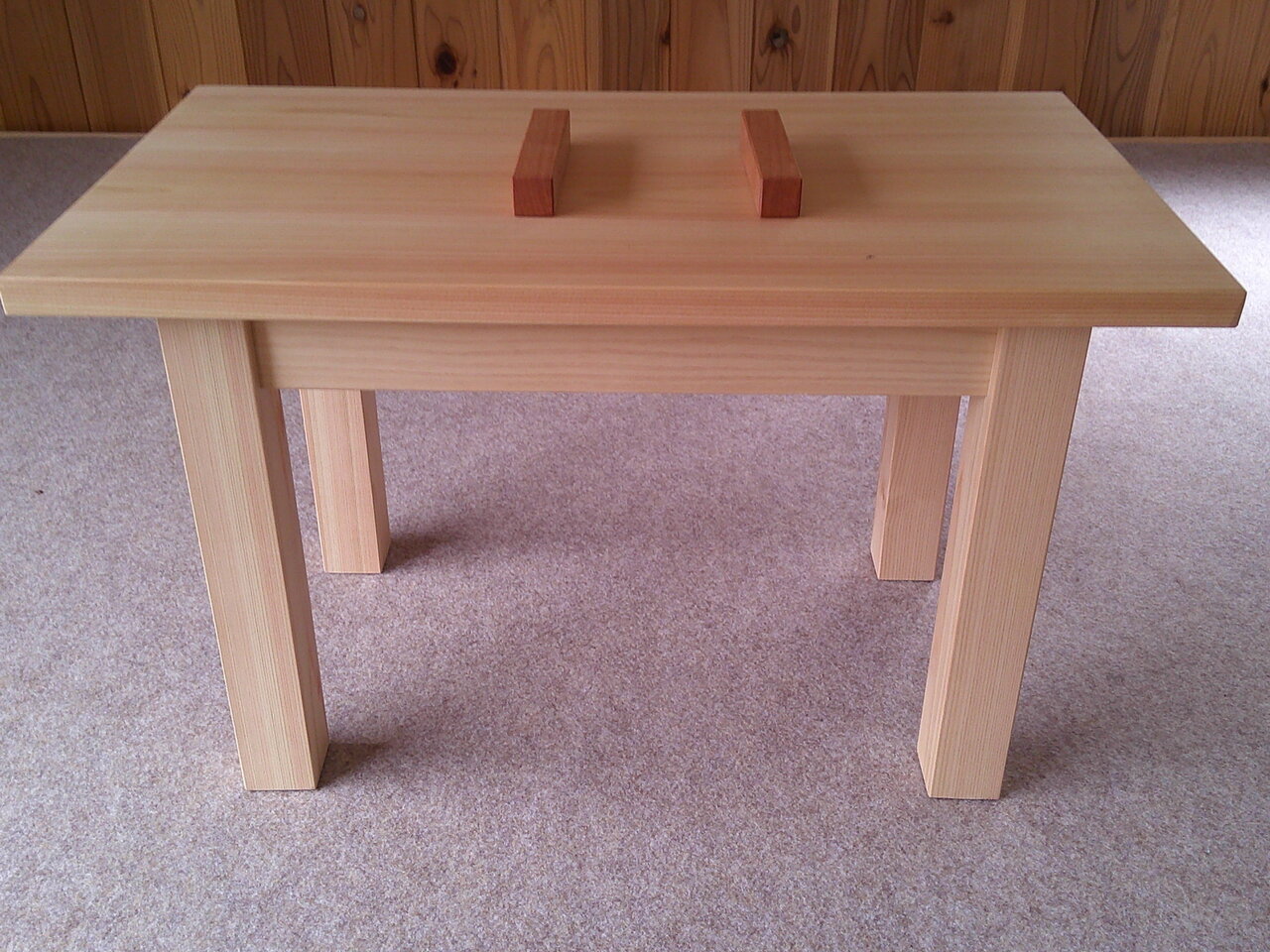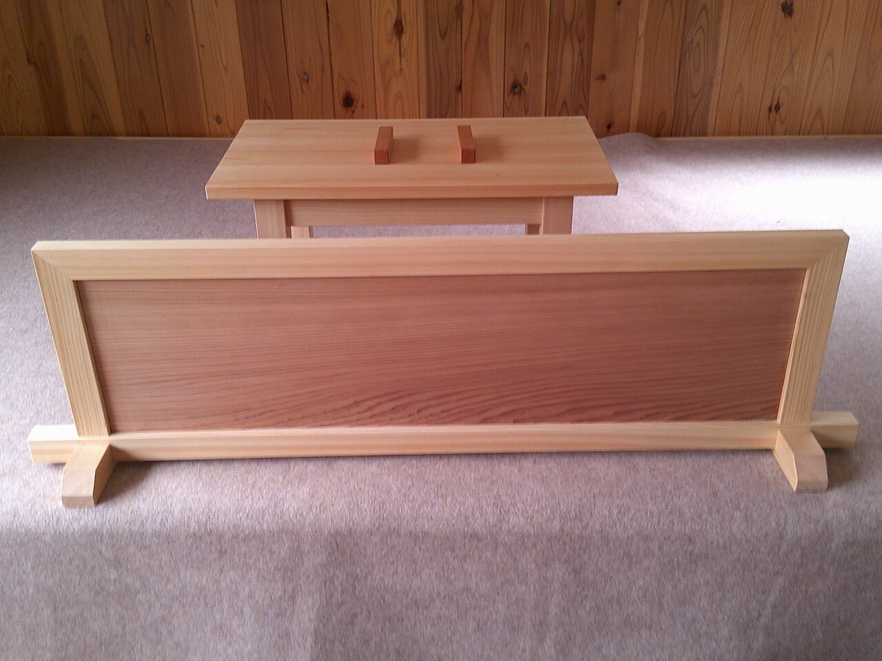 2025年04月24日 10:59 小谷本さんから落語で使う道具を頂きました 見台横60cm高さ30cm奥行30cm 膝かくし90cm 小拍子2個 すべて檜の手作りです。小谷本さんありがとうございました。