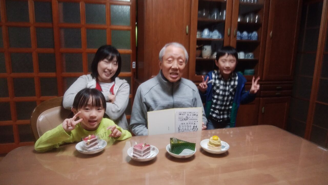 昨日は、恥ずかしながら74歳の誕生日。朝早々に、孫娘(5歳)から「じいちゃん、たんじょうびおめでとう。100さいまでいきてね」というかわいいメッセージとにがおえを描いたお祝いをもらった。(写真上)孫に祝いの返礼として、ケーキを買って一緒に食べてもらおうと考えた。丁度この日、書道教室があり、子供たちがみんな帰った後、家族でケーキを食べて祝ってもらえるとは有難いことだ。すると、玄関のチャイムがなり、郵便屋さんが「レタックスをお届けに参りました」と入ってきた。送り主は、埼玉のKさんご夫妻からである。私の誕生日をよく覚えていて下さるものだと恐縮ながら、光栄に思う。