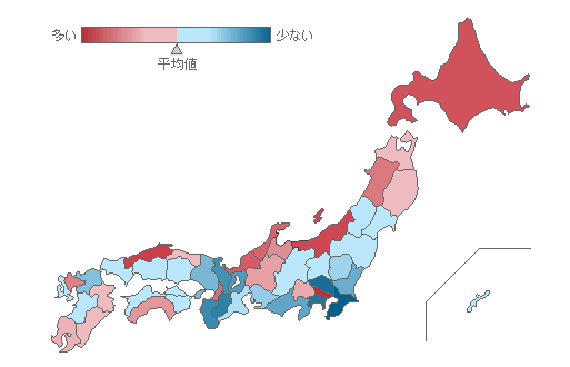 小沢一郎はゼネコンから距離を置かざるを得なかった.これはここ岩手では周知の事実です.いま小沢氏と民主党を支持しているのは,労組であり,農家であり,漁家であり,中小の経営者であるというのが,民主王国岩手の現実です.なぜ小沢一郎はゼネコンと手を切らなければならなかったか.それは地方における建設不況です.大口の受注は鹿島や大成建設といったスーパーゼネコンに奪われ,公共事業自体が膨らむ一方の財政赤字で減少しています.彼は確かにゼネコンと結びついていましたが,父親の代から支援してきた岩手県最大手の高弥建設が経営破たんし,労組や農家,漁家といった支持基盤を開拓せざるを得なくなったのです.このサイトを見れば分かるとおり,公共事業費の総額も,一人当たりの公共事業費は東京がトップです.青い中にぽっかりと浮かぶゼネコン王国東京.埼玉県や千葉県民はもっと怒って良い.