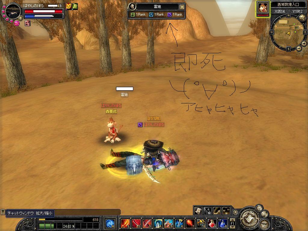 この日はG券も消化してやることなく、盗賊で長安付近を徘徊中、おいしそうなハンター2人を発見wペロリと頂いちまおうかなと歩み寄ると、ラクダに乗ったノボトイが・・・ww
