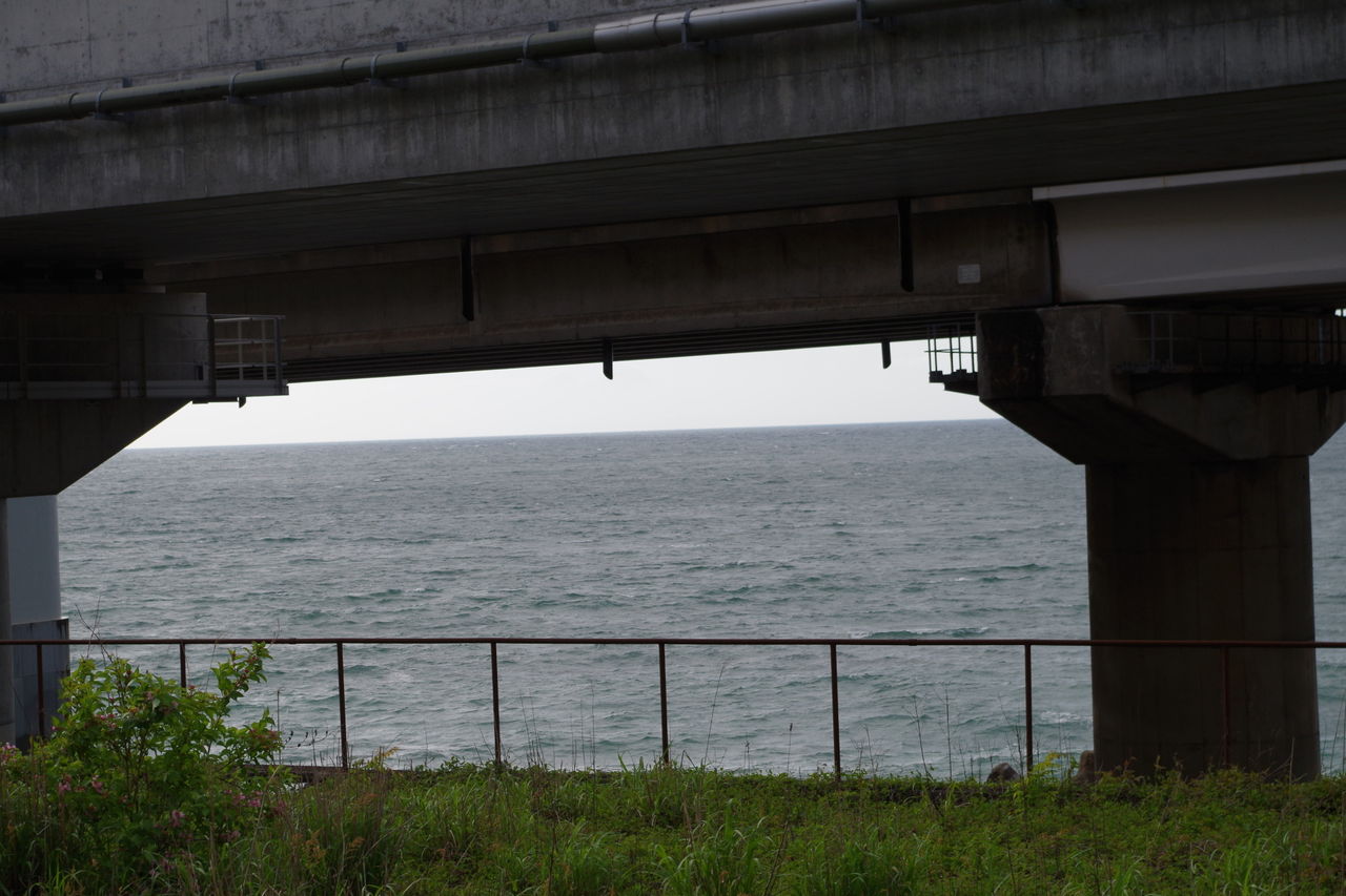 駅からの、北陸道の高架橋を挟んで日本海を眺めます。