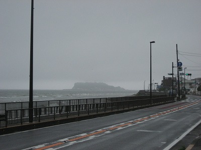 かすかに江ノ島が見えます。