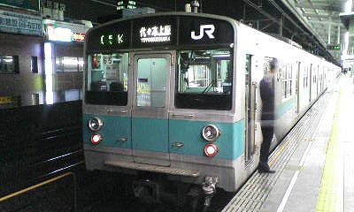 203系は、常磐緩行線の主力として多く見かける車両。中央快速線などで走っていた201系の地下鉄乗り入れバージョン。昭和57年からの配備なので、こちらもずいぶん古くなりました。2008年夏ごろから新型E233系への置き換えがはじまる予定です。