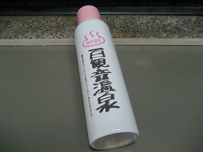 温泉成分入りの化粧水です。百観音温泉は塩化物泉なのでしょっぱいです。でも、しばらくすると肌がサラサラになり気持ちよいです。