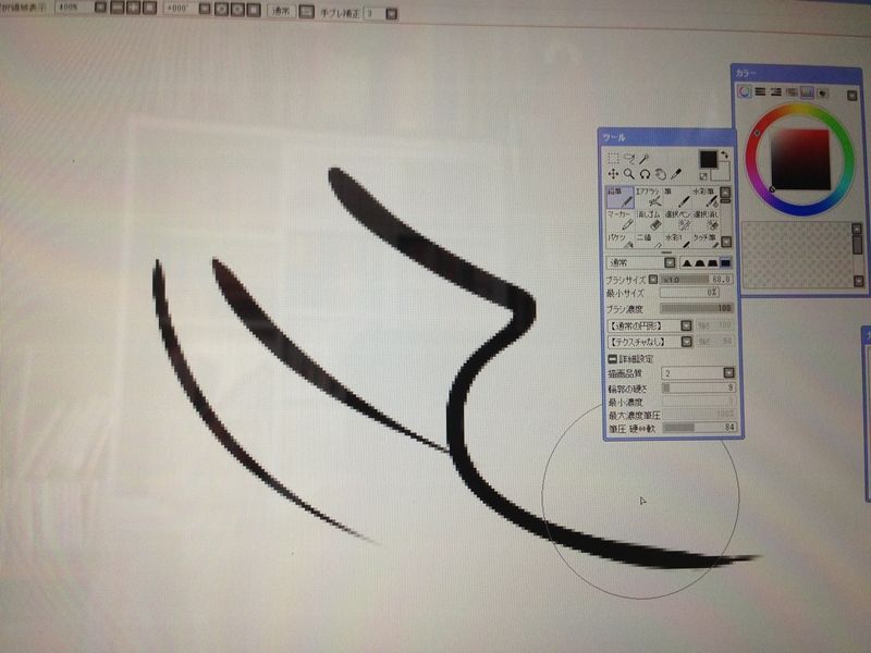 S68の画像と違って短いストロークにしっぽがついてないというのがわかるでしょうか。こっちはドライバがきちんとwintabで動いています。