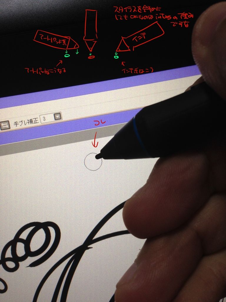 またこれが色々とごっちゃになってるところなんですが。今のタブレットPCで使われてる電磁誘導方式のペンは古くはartpadー初期Bamboo(切り替わり時期失念)ー初期cintiq(17インチ、18インチまでこのあとの21インチからはintuos形式)形式のものになります。逆をいうとこれに対応してる形式だったら過去のペンも使えますが(artpadのペンをEP121に使うことも可能だし同じワコムのタブレットユニットを使ったタブレットPCのペンをAndroidタブレットでワコム方式を使ってるgalaxynoteに使うことも可能)初期のペンは最小on荷重(入力するために必要な力)がかなり悪いので力を入れないとペンがかけなかったりします。そのへんが改善されたライトタッチペンというのもあるんですがそのへんは過去ログを見ていただけると。
