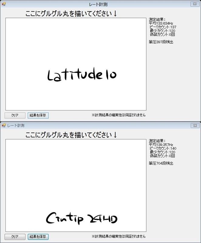 筆圧に関してどんなもんかしらとちょっと調べていた時に、vaioのduo11スレにあったタブレットのサンプリングレートと筆圧の段階を計測するアプリがあったりしましたので試しに計測してみました。