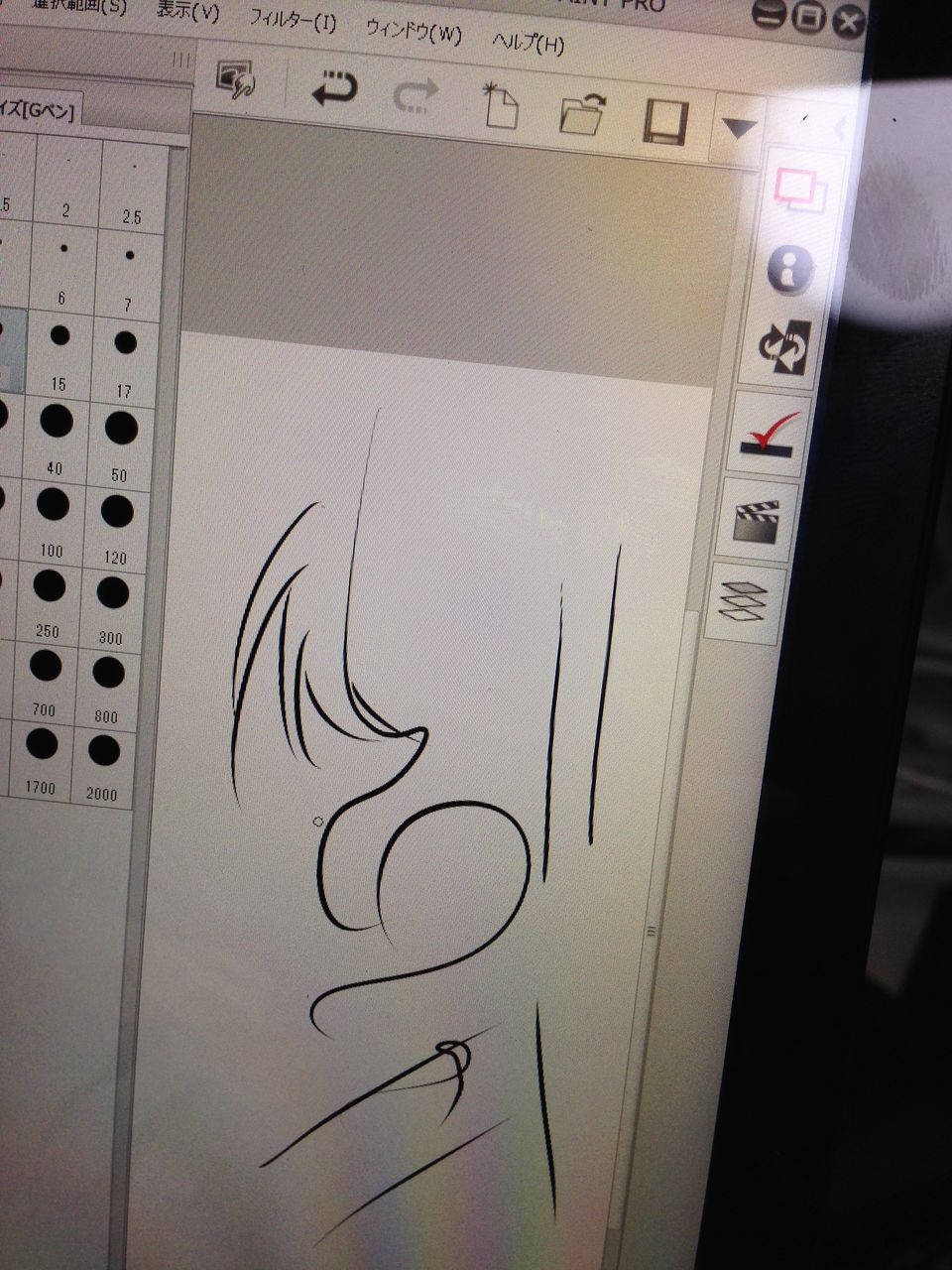 まぁこれはソフトの補正がかからないようにかなりゆっくり引いてる部分はあるのですがクリペとかの線補正を使えばある程度は吸収できるかなぁという所は有ります。