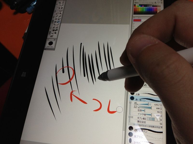 ntrigのタブレットを使う時の応用でタブレットデバイスをwintabからtabletPC扱いにすることで筆圧感知成功。まぁ現状こんな感じで使う感じですかねぇ