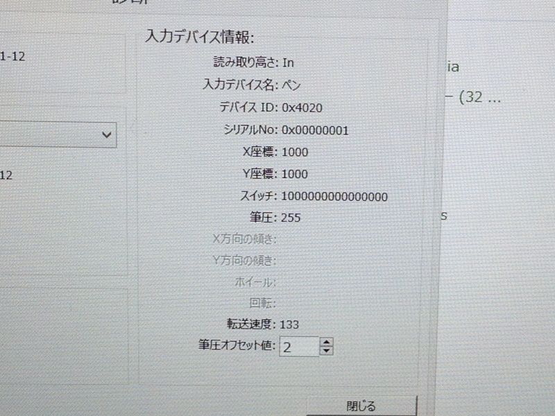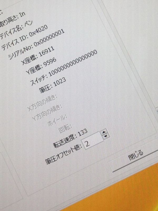 という感じになりました。これでふと思ったのはタブレット端末によって感知距離が違う。 ってこともそうなんですが、もしかして筆圧感知の調整距離をいじるとペンの認識距離自体が微妙に変わってしまうのでは無いか?ってことでしょうか。