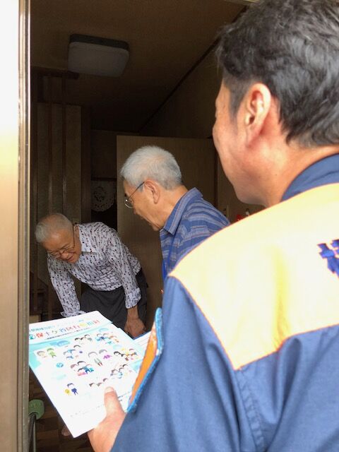 高齢者のお宅を訪問して、転倒やケガの防止のため家の中を整頓しましょうという指導や火災報知機・感震ブレーカーの設置普及を呼びかけます。