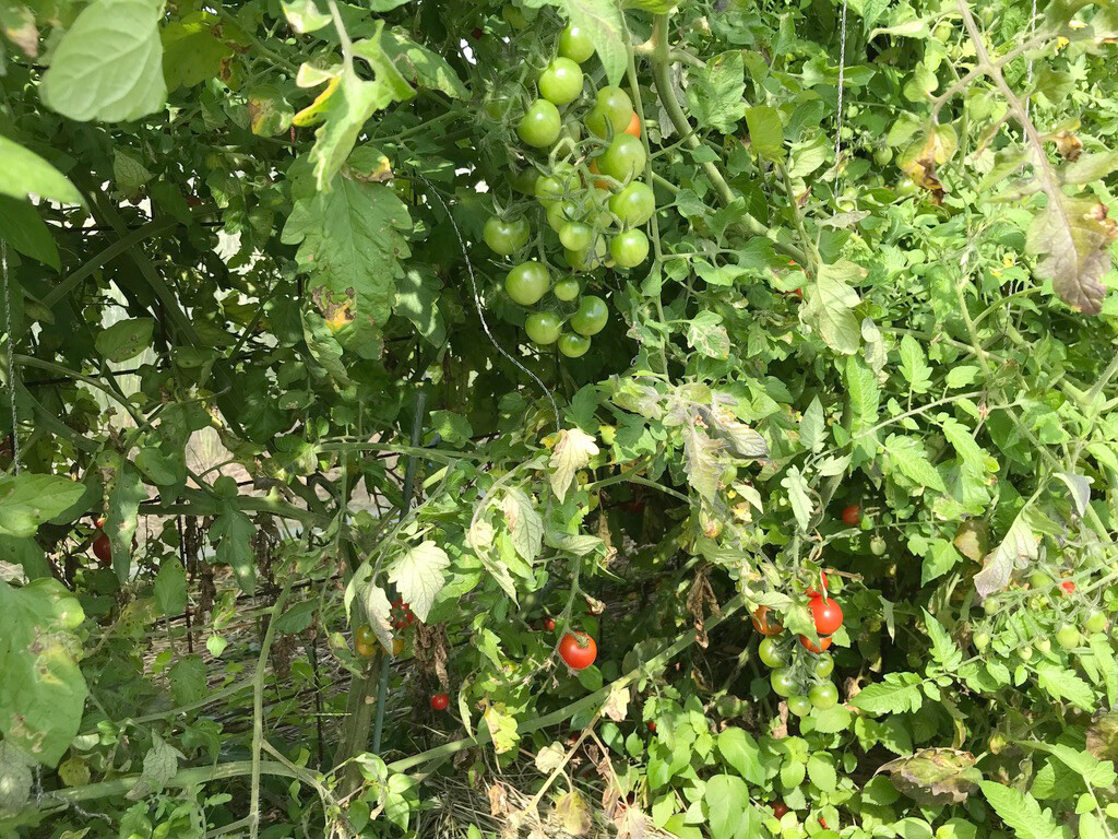 これだけ大きいとゆったりと栽培できる。と思いましたが、意外にミニトマトって面積とるんですね・・
