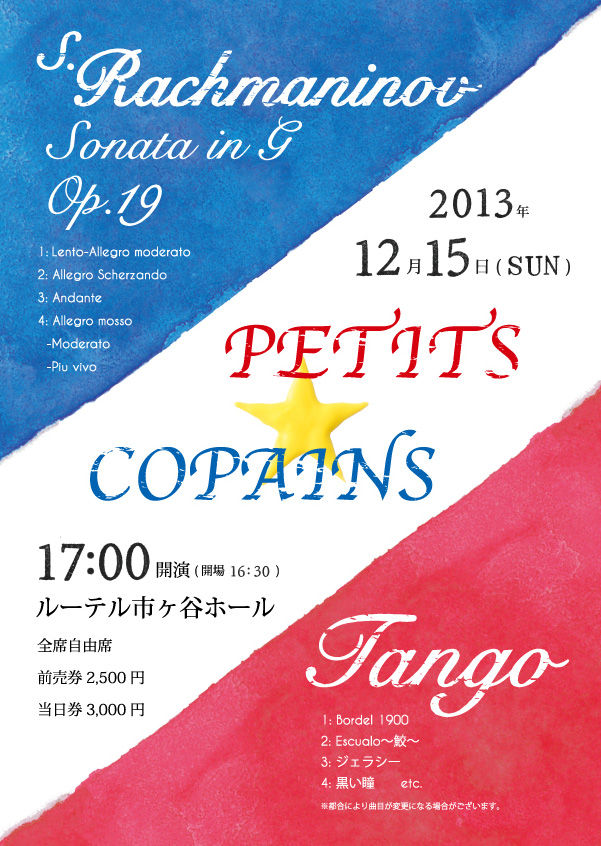 Petits☆Copainsさんの年末コンサートのチラシ&チケットの制作です。