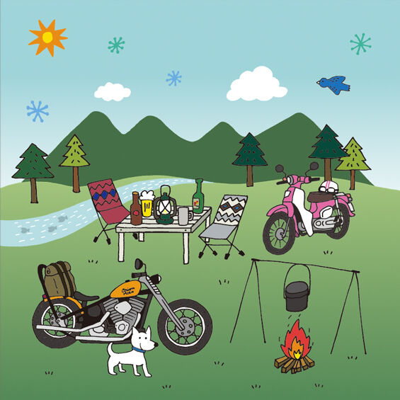 アメリカンなバイク用品を展開中のオリオンエースさんの新商品を紹介するリーフレットの表紙イラストを描かせていただきました。