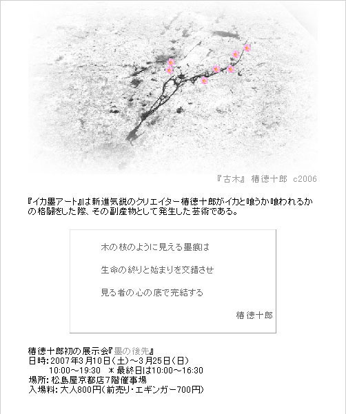 ノンフィクション作家の椿徳十郎さんがイカ墨アート写真展を開く事を明らかにした。