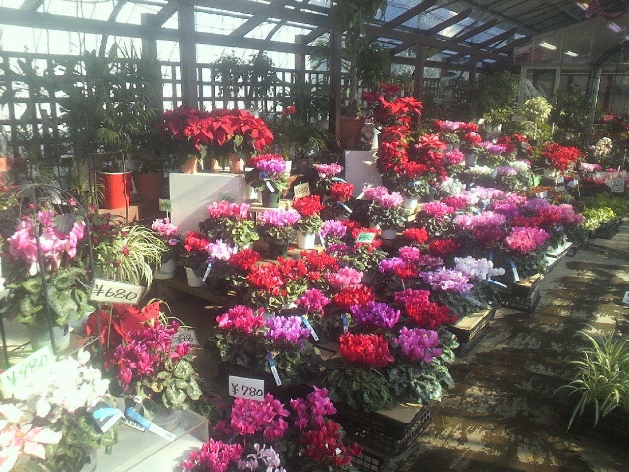 売店の様子ですシクラメンとポインセチアでいっぱいになってます12月からはシクラメン祭りを開催します今年もシクラメンは良くできてますそれではまた