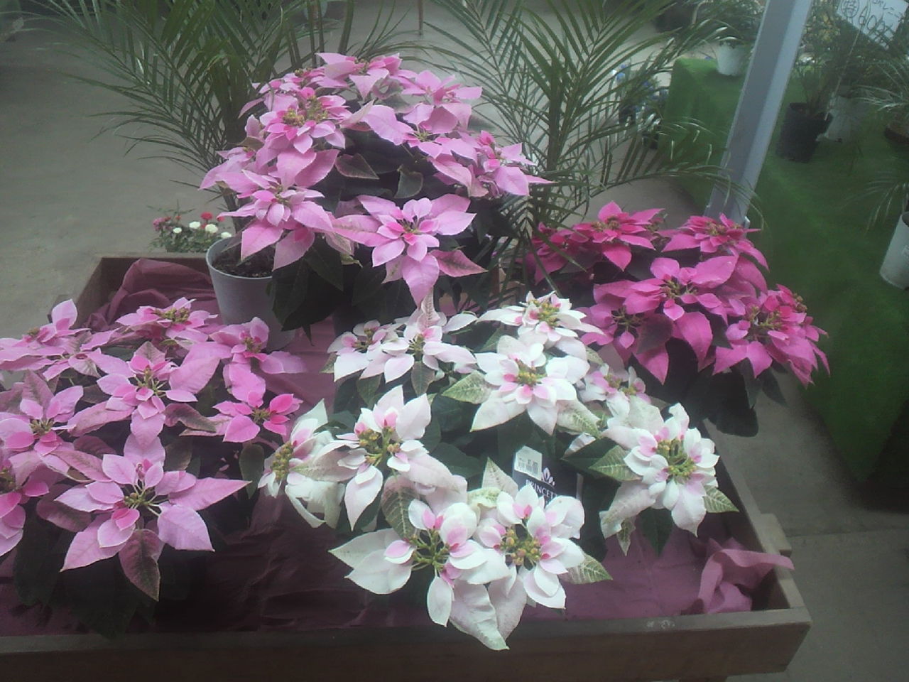 プリンセチアが人気ですちょっと値段が下がってきましたねピンクの色がなんとも言えないんですが赤の方が売れます潅水注意です、乾いたらたっぷり根ぐされに注意しましょうそれではまた
