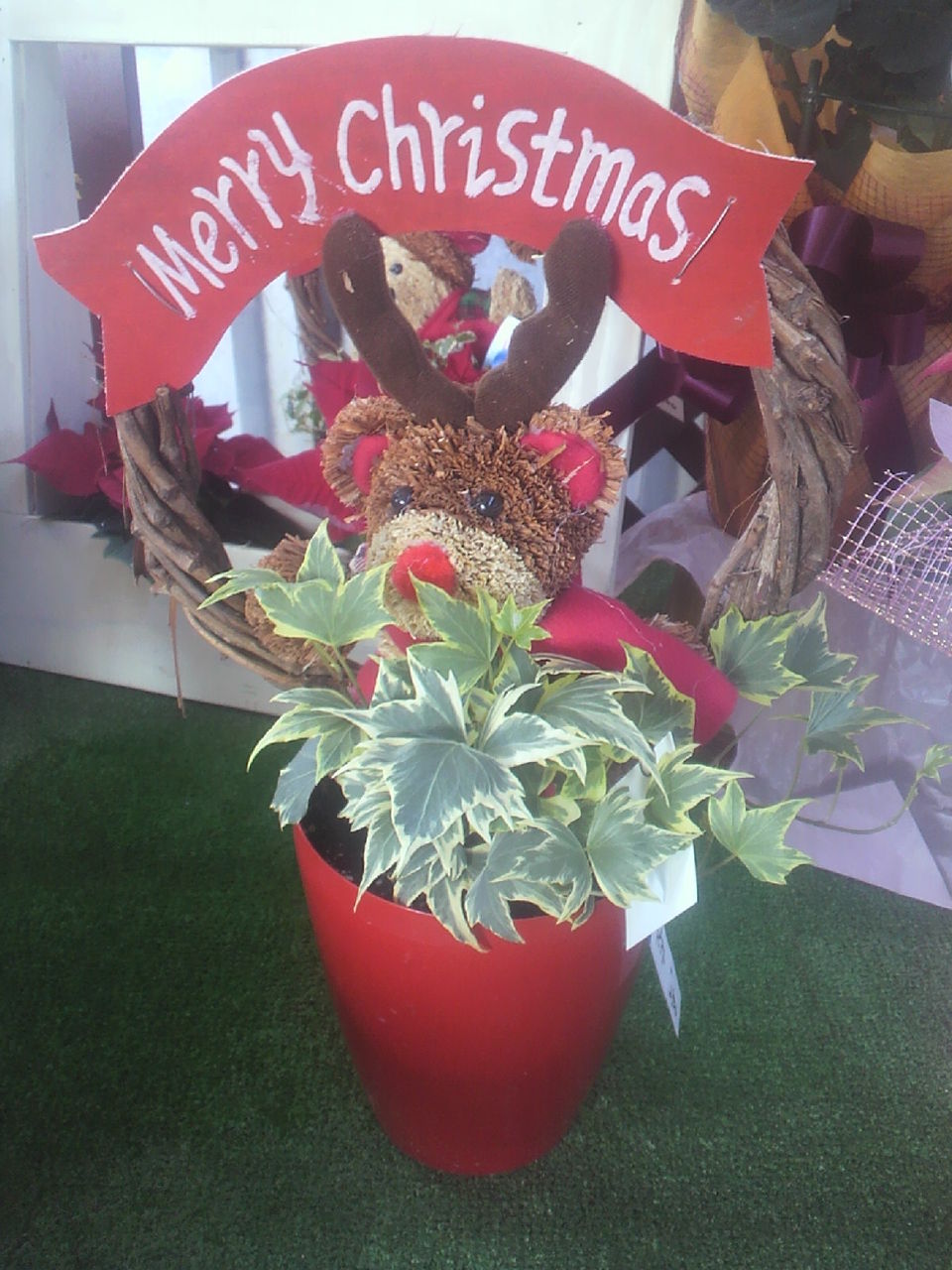 クリスマス用ですトナカイが可愛いいんですねヘデラが雰囲気をだしてますクリスマスまで一カ月を切りました店は飾り付けも終わって綺麗になってますそれではまた